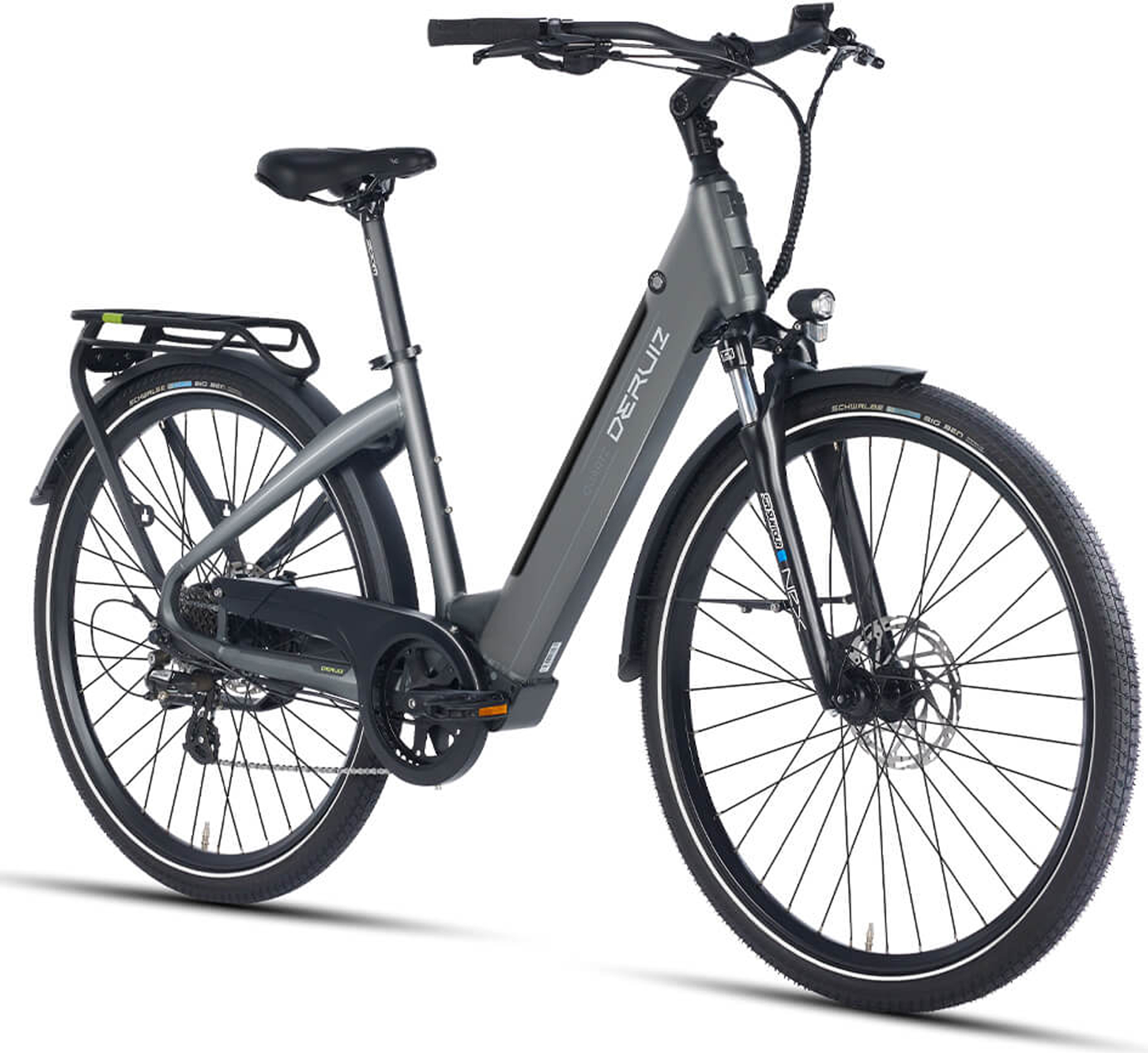 Der robuste Aluminiumrahmen und die zuverlässigen Tektro Scheibenbremsen ermöglichen eine sichere Fahrt bei jedem Wetter. Egal ob auf ebenen Straßen oder hügeligen Strecken, das DERUIZ E-Bike bietet die nötige Stabilität und Sicherheit.